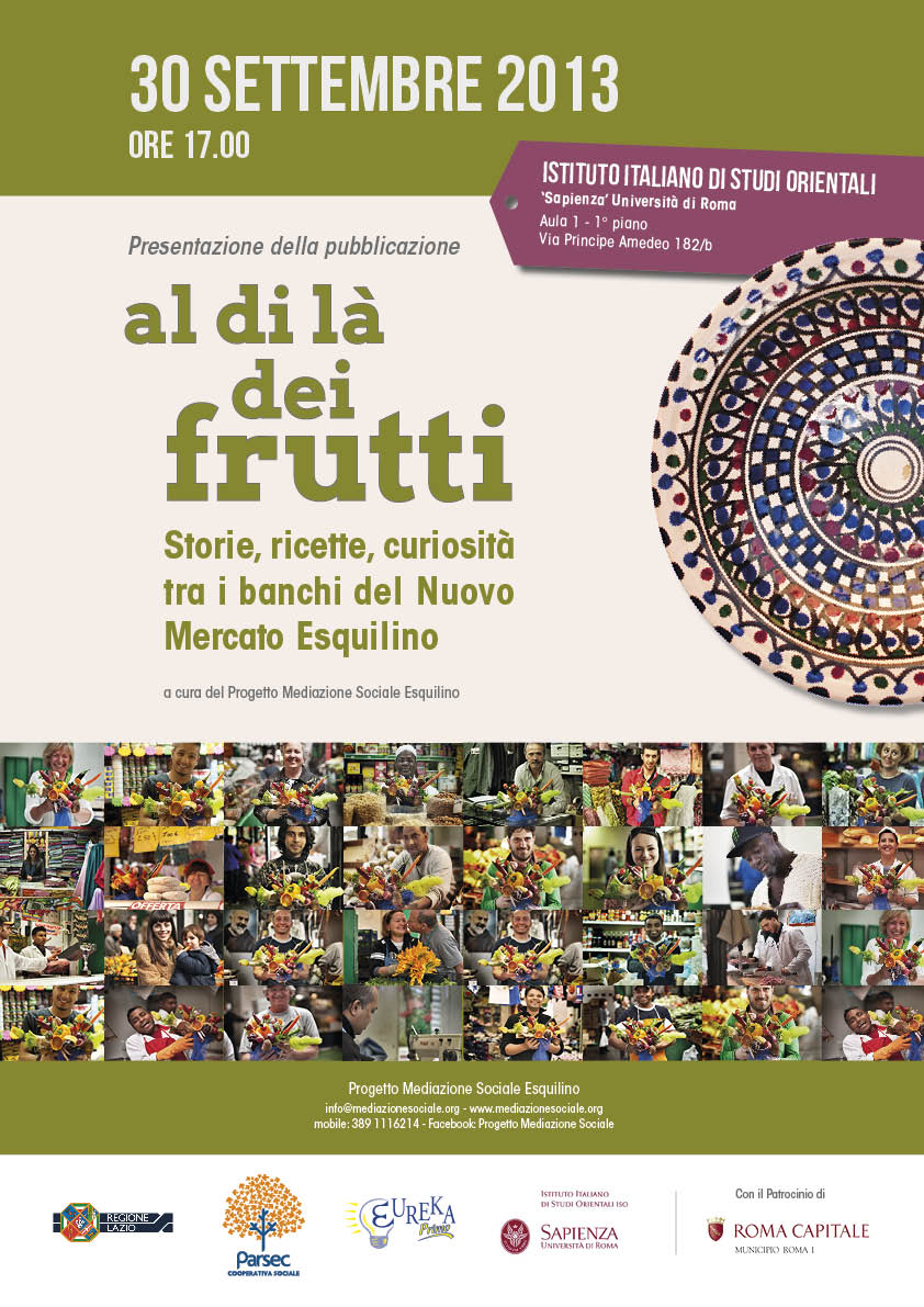 La pubblicazione “Al di là dei frutti – storie, ricette e curiosità tra i banchi del Nuovo Mercato Esquilino” nasce all’interno del Progetto Mediazione Sociale Esquilino, gestito dalle Cooperative Parsec ed Eureka I Onlus.